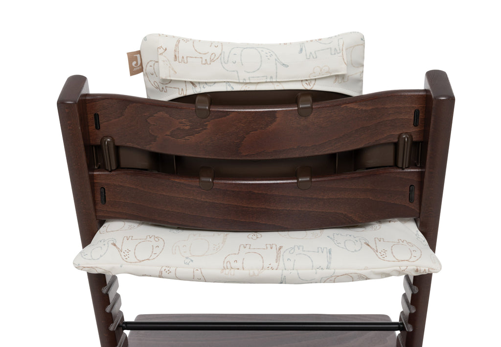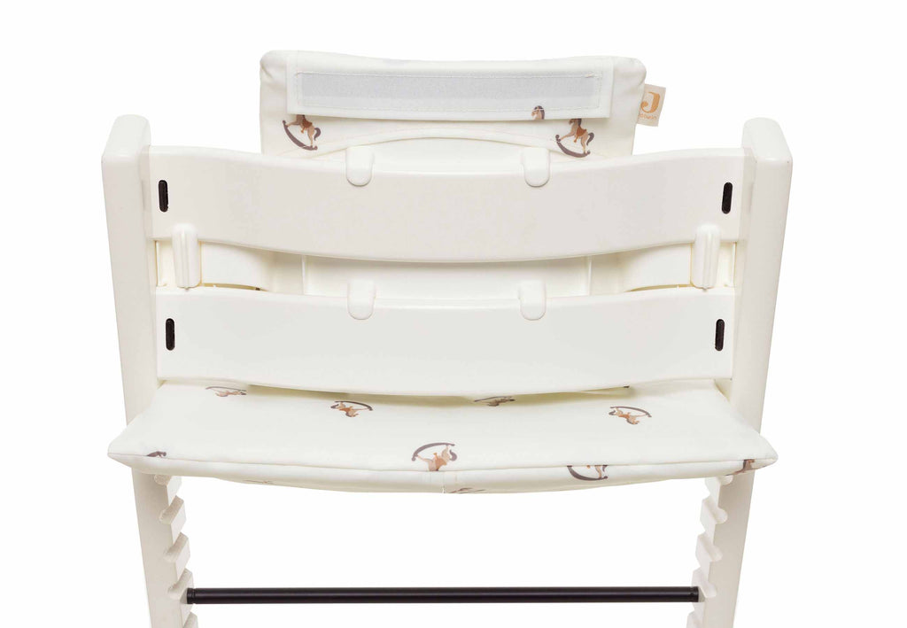 Auch für Sitzverkleinerer für normale Hochstühle bist du bei Jollein genau richtig. Diese sind in den gleichen Farben und Prints wie die Sitzverkleinerer für die Mitwachsstühle erhältlich. Du kannst den Sitzverkleinerer ganz einfach mit den Schnüren an der Rückseite des Sitzes am Hochstuhl befestigen. Wenn du einen Hochstuhl mit Gurt hast, kannst du den Gurt durch die praktischen Schlitze weiterhin verwenden.