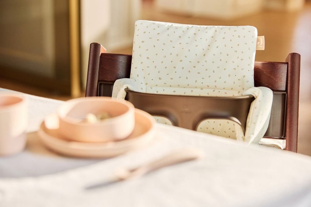 Du kannst einen Hochstuhl verwenden, sobald dein Baby selbstständig sitzen kann. Der Sitzverkleinerer lässt sich schön direkt im Hochstuhl platzieren, denn er bietet zusätzlichen Komfort, eine bessere Sitzhaltung und sieht auch noch schick aus. So machst du den schönsten Moment des Tages noch geselliger und angenehmer. Die universellen Sitzverkleinerer von Jollein lassen sich leicht mit einem feuchten Tuch abwischen und sind mit allen trendigen Prints erhältlich.