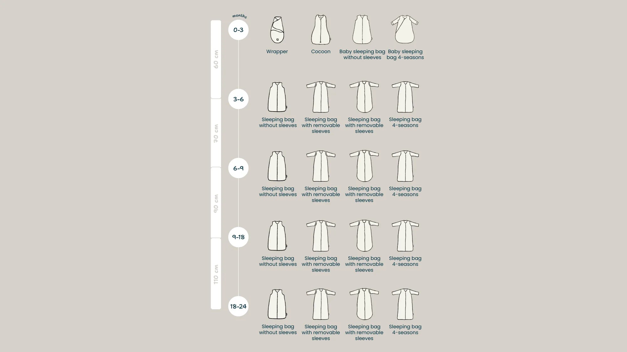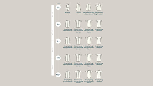 Find the ideal sleeping bag for each age in the table. Find out which one fits the best for your little one!