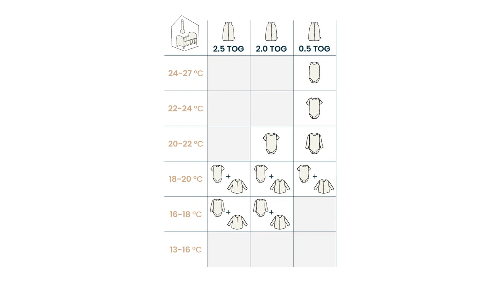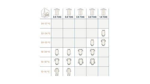 Checking for yourself and using common sense is the best method to ensure your baby sleeps safely. Additionally, there is a technical tool: the TOG value. This is a rating system for the insulating quality of bedding. The colder the environment, the higher the TOG value should be. Conversely, the warmer the room, the lower the TOG needed. TOG stands for Thermal Overall Grade, and the TOG value indicates how much body heat is retained in items like sleeping bags, blankets, swaddles, clothing, etc.