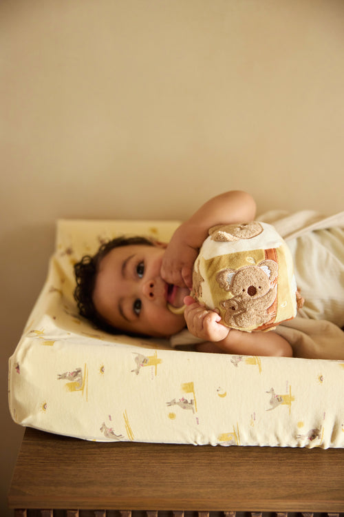 This changing mat cover feels wonderfully soft and makes every moment with your little one extra special. Thanks to the elastic edges, the cover stays perfectly in place. The soft fabric and gentle look turn the changing table into a warm, cosy spot full of precious moments with your little one.