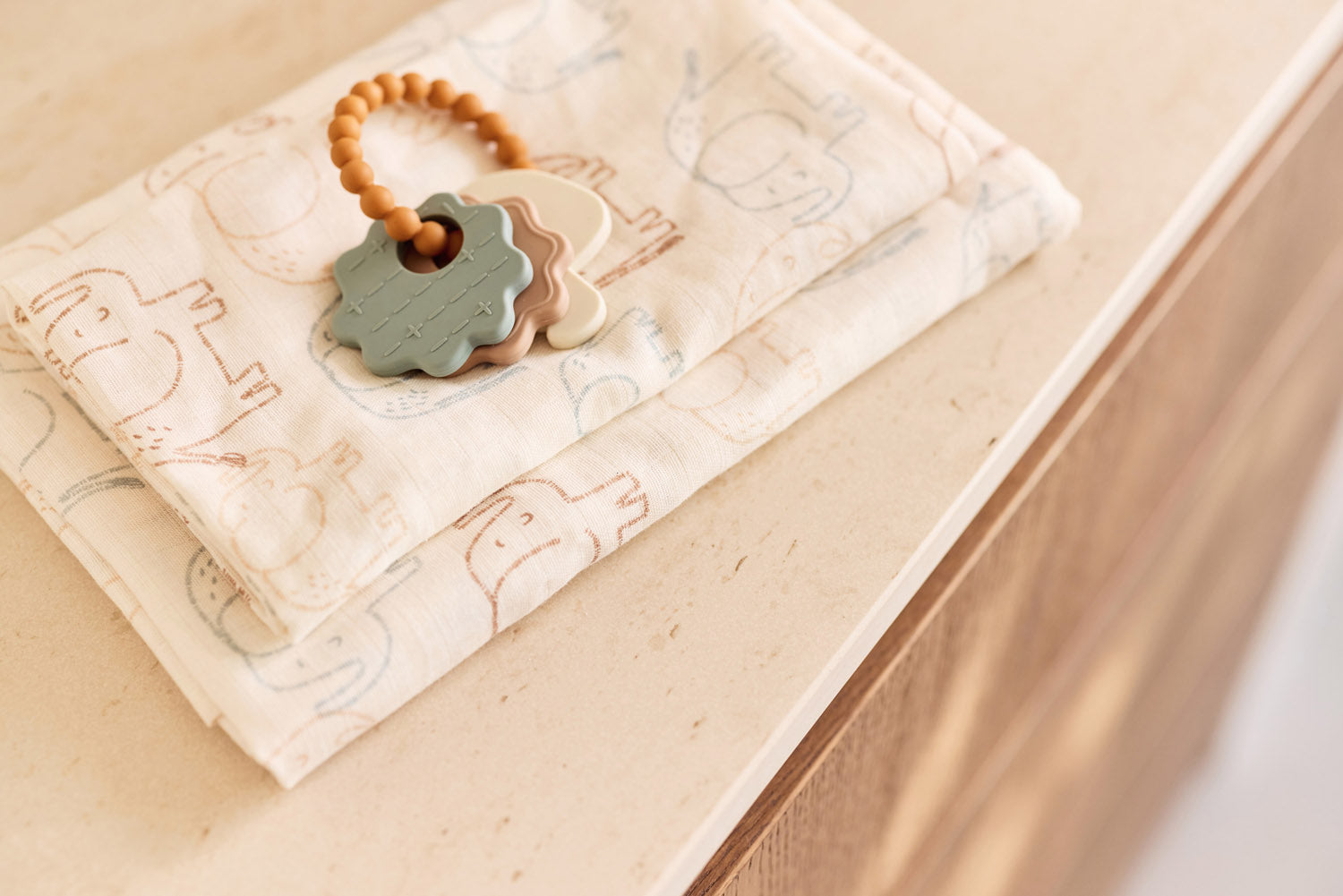 With these extra large muslin cloths, you always have a versatile cloth on hand. They are wonderfully soft, absorb moisture well, and dry quickly. Perfect for swaddling your baby or as a light blanket. The cute Elephant Tales print with adorable elephants makes them extra fun! Packaged in sets of 2, a must-have for home and on the go.