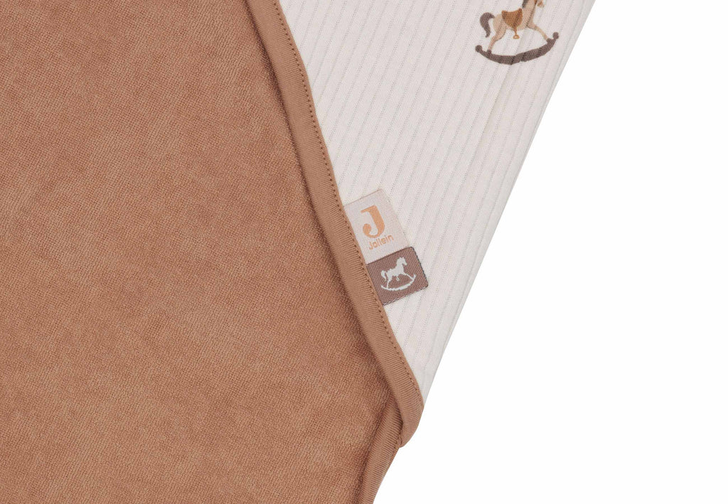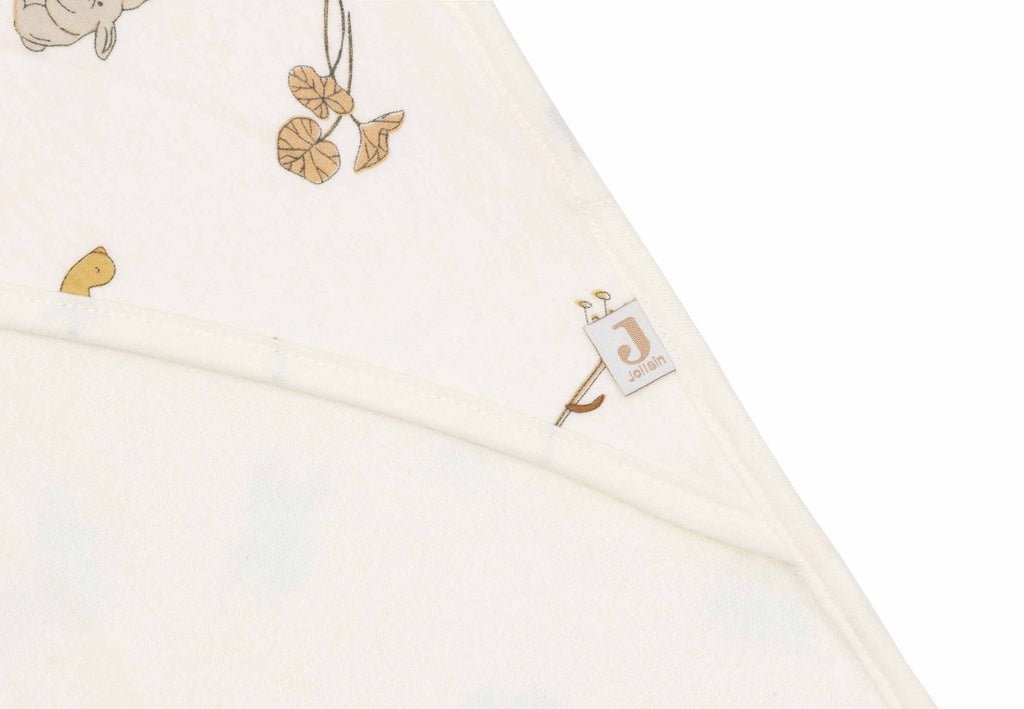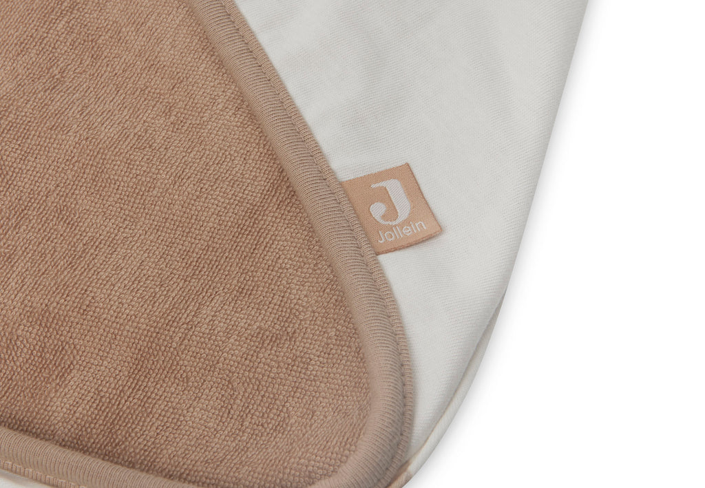 Les capes de bain de Jollein sont disponibles en tissu-éponge 100% coton et en jersey, un mélange de 75% de coton et de 25% de polyester. Les deux matériaux sont doux et absorbants.