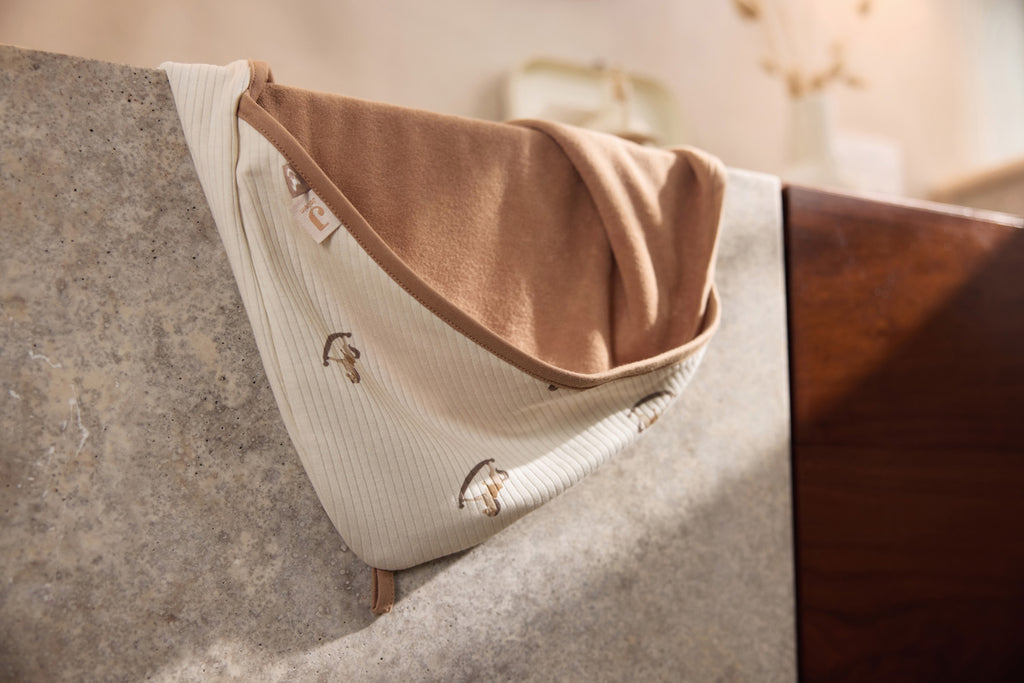 Lorsque votre bébé vient de prendre un bain, il peut avoir froid rapidement. Il est donc important de le protéger. Une cape de bain est la solution idéale pour cela. Enfilez d'abord la capuche, puis utilisez les deux côtés pour envelopper votre bébé. La capuche et le tissu aéré procurent une agréable sensation de chaleur et le tissu absorbant de la cape de bain vous permet d'être prêt en un rien de temps !