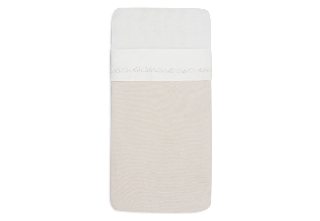 Quoi de plus spécial que de partir à l’aventure ensemble ? Dans Elephant Tales, un grand éléphant emmène son petit avec lui – bien à l’abri sous ses grandes oreilles et toujours tout près. Les illustrations tendres, aux lignes délicates et aux tons doux comme Sea Green, Biscuit et Milky Coffee sur un fond Oatmeal, apportent une atmosphère chaleureuse et ludique à la chambre. À combiner merveilleusement avec le Milky Coffee Box Knit, les couvertures Sea Green Rib et le Cosy Knit Sea Green. Un thème plein d’amour qui évolue avec vos plus beaux moments partagés.