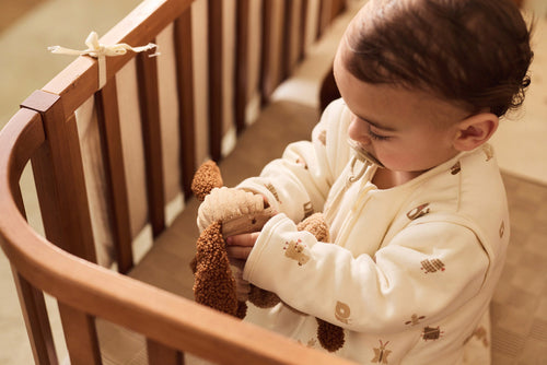 Ce attache-tétine Animal Friends a la forme d’un adorable petit chien nommé Diego. Fabriqué en tissu côtelé biscuit avec des oreilles, mains et pieds en bouclé marron cuir, il est aussi mignon que doux. Les petits yeux brodés et l’étiquette Jollein lui donnent un look joyeux. Grâce au lien, il s’attache facilement à une tétine pour que bébé l’ait toujours près de lui.