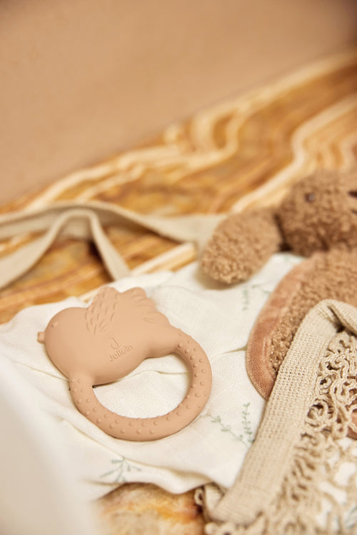 Ne plus jamais perdre la sucette et profiter de ce lapin très mignon en même temps ? Oui, c'est possible ! Cette adorable attache sucette de couleur Biscuit est dotée d'un cœur brodé en guise de nez et de deux cordons de jeu. A l'arrière, le tissu est en velours doux et à l'avant, en bouclette. Le passepoil est également en velours et nous sommes persuadés que votre petit sera adepte de ce lapin.