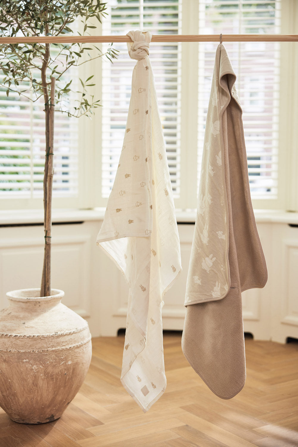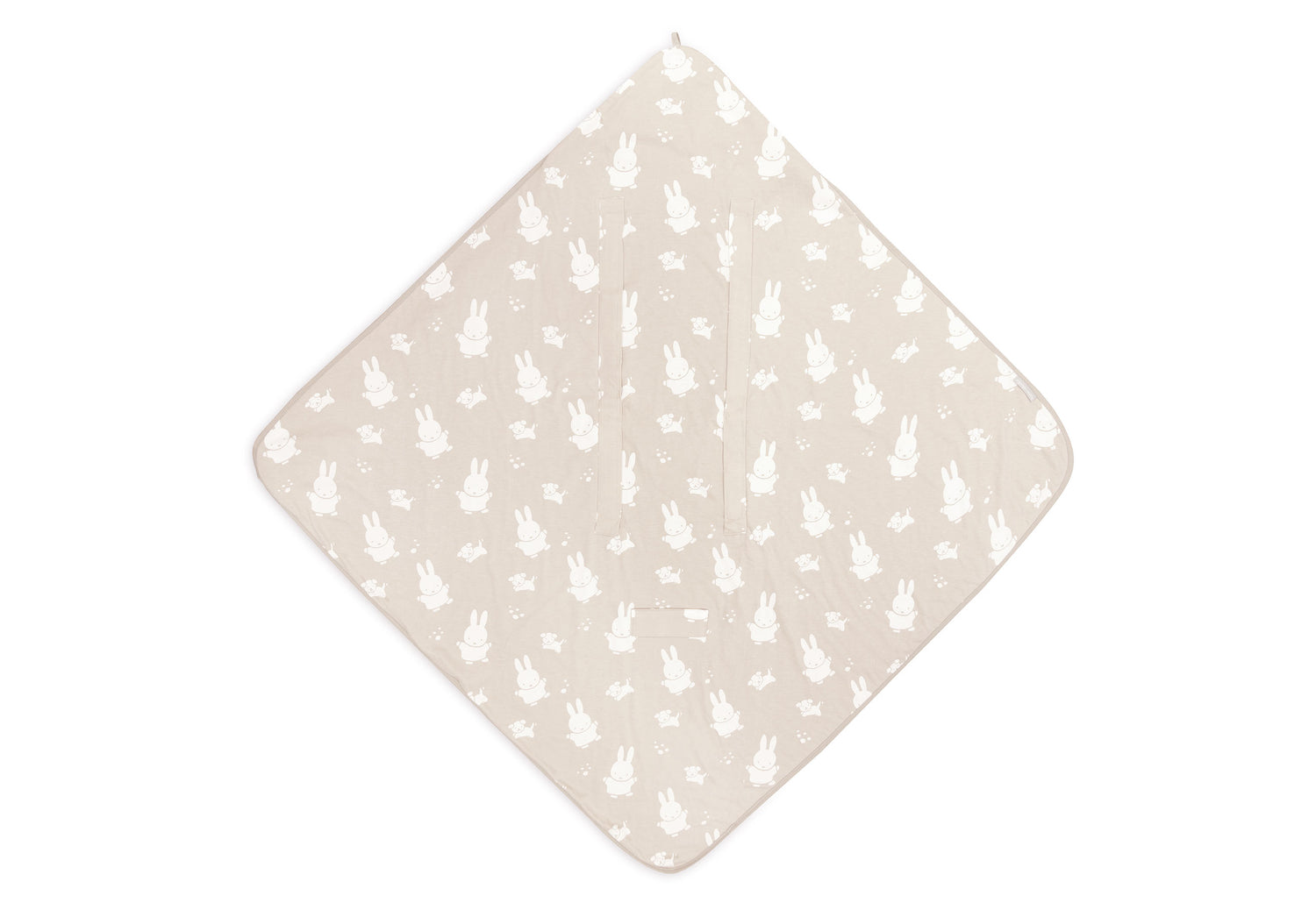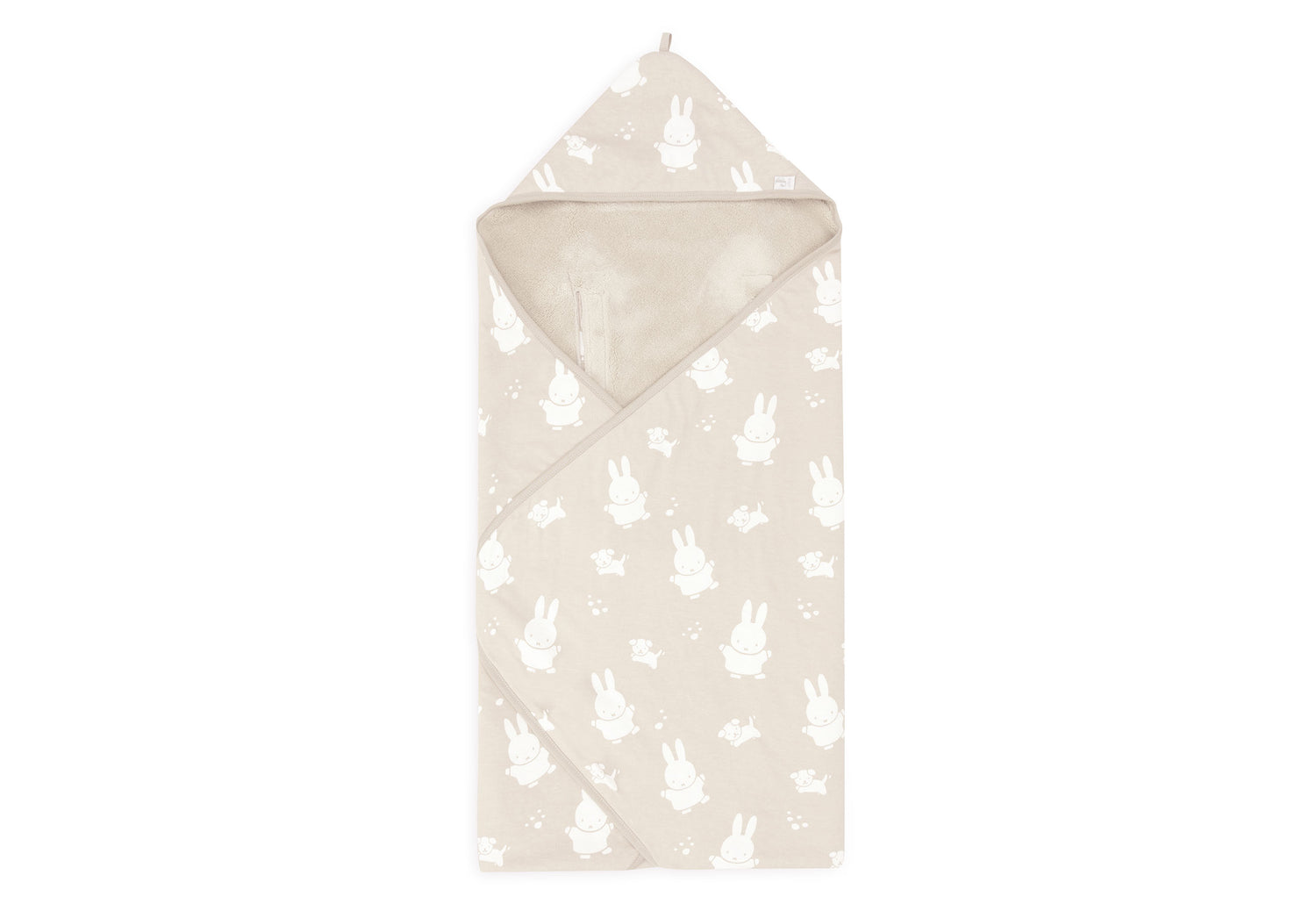 Jetez un peu un œil sur cette couverture portefeuille irrésistiblement mignonne à l'effigie de Miffy et Snuffy ! Cette couverture portefeuille extra-large permet d' emmitoufler votre enfant et de voyager confortablement bien au chaud. La couverture portefeuille est munie de bandes Velcro pratiques pouvant être utilisées pour les sangles de sécurité de la voiture. La couverture est par ailleurs parfaite pour les câlins à la maison sur le canapé ou pour les petites siestes dans le parc pour enfants. Grâce à son intérieur en polaire, la couverture est très douce et l'extérieur est orné de l'adorable imprimé Miffy et Snuffy. Disponible en vert olive et en nougat. Pour la rendre encore plus confortable, vous pouvez mettre la capuche sur la tête. Envie de ranger la couverture ? Elle est dotée d'une boucle pratique pour la suspendre.