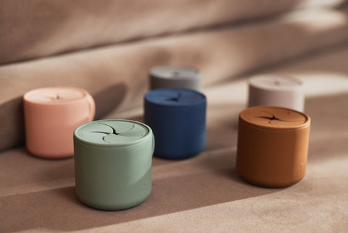 Le gobelet à goûter en silicone est disponible en 6 couleurs vives !