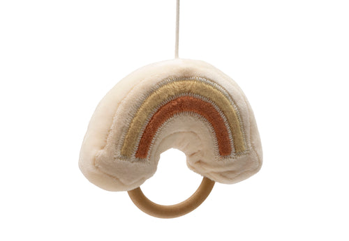Deze leuke houten babymobiel uit het Kangaroots thema is perfect voor je kleintje. Breng warmte en geborgenheid naar de babykamer met deze leuke babymobiel. Je kunt de mobiel aan de rand van de box bevestigen voor veel speelplezier of aan de rand van het ledikantje voor het slaapritueel. Aan de houten ring hangen twee kangoeroes, een vrolijk zonnetje en een kleurrijke regenboog – allemaal zachte figuurtjes die je kleintje uitnodigen om te kijken en te ontdekken. Ook super leuk om als (kraam) cadeau te geven. Let op: houten mobiel arm niet inbegrepen.
