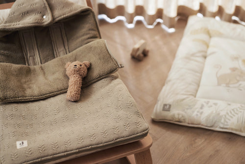 Das Gestrick an der Außenseite dieses Fußsacks verleiht ihm eine schicke Optik und das ultraweiche Fleece auf der Innenseite sorgt dafür, dass dein Baby noch bequemer im Autositz oder Kinderwagen liegt. Ein Fußsack ist wirklich praktisch. Du kannst dein Baby ganz einfach in den Fußsack legen, indem du zuerst den Reißverschluss des Sacks vollständig öffnest. Du kannst dein Baby auch ganz einfach aus dem Autositz nehmen, indem du den Fußsack vollständig öffnest. Von oben lässt er sich mit einem Druckknopf schnell in eine Mütze verwandeln, damit der Kopf auch warm bleibt, sobald du den Autositz draußen trägst oder spazieren gehst. Damit es deinem Baby im Auto nicht zu heiß wird, öffnest du den Reißverschluss des Sacks einfach so weit wie nötig. Kurzum: ein super praktischer, bequemer Fußsack für dein Baby. Der Fußsack hat hinten Öffnungen, um das Anschnallen der Gurte besonders einfach zu machen. Es ist ein universeller Fußsack für den Maxi Cosi und alle anderen Autokindersitze der Kategorie 0 mit Drei- oder Fünf-Punkt-Gurten. Du kannst diesen Fußsack auch im Kinderwagen verwenden. Dein Baby ist im Handumdrehen warm eingepackt für den Spaziergang. Erhältlich in Oatmeal, Wild Rose und Olive Green. Dieser Fußsack hat keinen TOG-Wert, da er dazu gedacht ist, dein Kind unterwegs warmzuhalten und nicht als Schlafsack dient.
