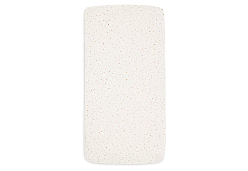 Dieses niedliche Spannbettlaken sorgt dafür, dass Ihr Baby weich und bequem liegt. Die Jersey-Variante fühlt sich angenehm geschmeidig an, ist atmungsaktiv und dehnbar. Der rundum eingenähte Gummizug hält das Laken sicher an seinem Platz – auch wenn sich Ihr Baby nachts bewegt. So bleibt das Bettchen stets ordentlich bezogen, und Sie müssen nichts zwischendurch glattziehen. Der verspielte Print verleiht dem Bettchen eine fröhliche Note, ohne unruhig zu wirken. Suchen Sie etwas Ruhigeres? Dann gibt es auch Jollein-Spannbettlaken in Uni-Farben.