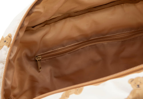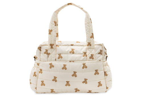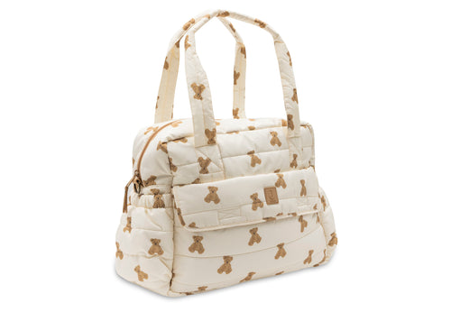 Diese trendige Wickeltasche aus der Kollektion Mini Teddy Bear vereint ein niedliches Design mit praktischer Funktionalität. Sie bietet viel Platz für alles, was Sie und Ihr Baby unterwegs brauchen. Auf der Vorderseite befinden sich zwei leicht zugängliche Taschen mit Klettverschluss – inklusive einer passenden Wickelunterlage. Dank der bionischen Beschichtung ist die Tasche wasserabweisend und somit für jedes Wetter bestens geeignet. Sie können die Tasche bequem in der Hand tragen oder mithilfe des verstellbaren Schultergurts über der Schulter. Tipp: Kombinieren Sie die Tasche mit unseren Kinderwagenhaken – für noch mehr Komfort auf Ihren Spaziergängen.
